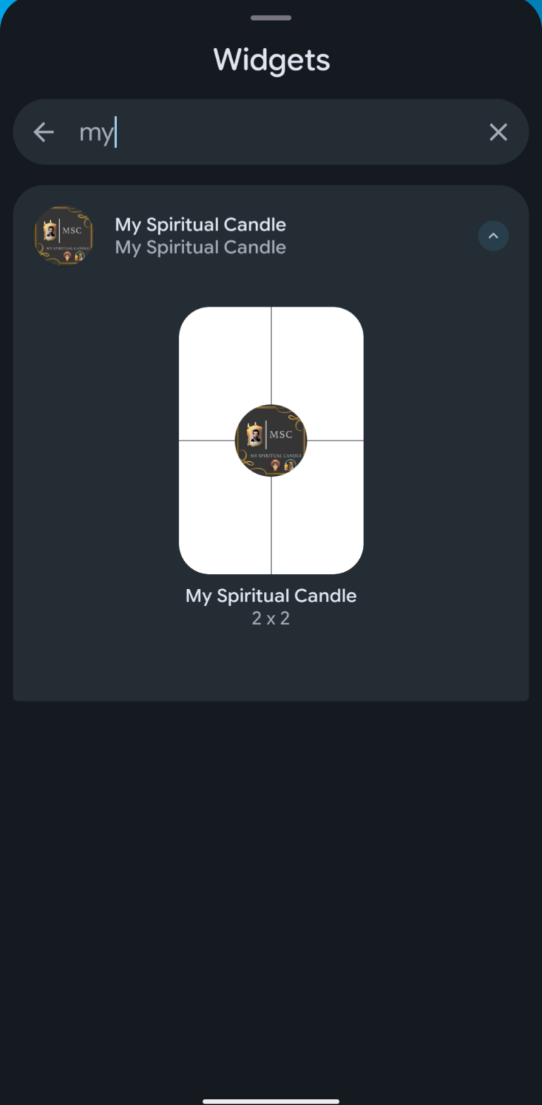 Accédez aux widgets de votre téléphone, recherchez My Spiritual Candle et cliquez sur ajouter le widget.